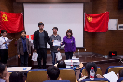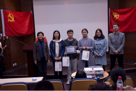 临近尾声,党委副书记王凌凌老师代表发言,她首先肯定了此次知识竞赛的重要意义和学生组织举办方的工作成果,并提出“竞赛已经落幕,学习却仍是进行时,赛后同学们可以通过建群资源分享或增加党支部团支部之间的联合交流学习,进一步学习党的最新理论知识”;另外,王老师以改革开放四十年来自己所感受到的切身体会,鼓励新一代学生党员不断夯实专业基础,将来为祖国的建设富强做出作为“同济人、材料人”应有的贡献。