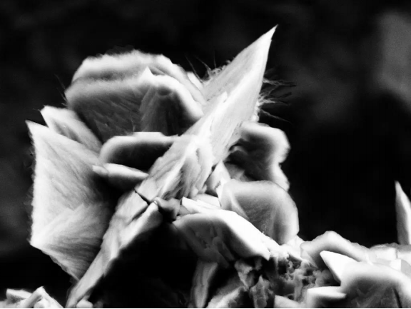 由于水泥基材料为不导电样品,同时为了观察其在均匀外力作用下自然断裂面的微观形貌,本图片为直径约1cm不进行任何处理的小试块进行微观形貌观察的结果。由于样品的不导电性以及表面形状的凹凸不平,给电镜拍摄带来相当大的难度。拍摄图像所采用条件:真空度:1.97e-004pa;电压:5KV;工作距离:3.0mm;放大倍数10K;所采集的信号为二次电子。拍摄图像如同一束生长在悬崖边的杂草。其实则为钙矾石。其能够导致水泥基材料性能的弱化和损失,也是水泥基构件在外力作用下,容易发生破坏的受力薄弱点。